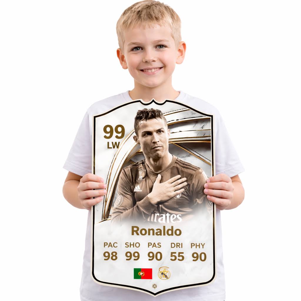 Celebrate CR7’s unstoppable journey at Al Nassr, 99 goals in 111 games, pure greatness. Custom-made, high-quality football cards for true Ronaldo fans.